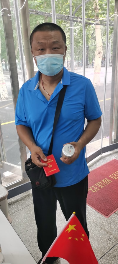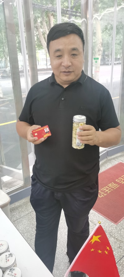 為慶祝建軍節,對退伍軍人贈送菊花。